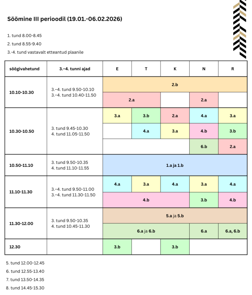 Koolisöökla menüü