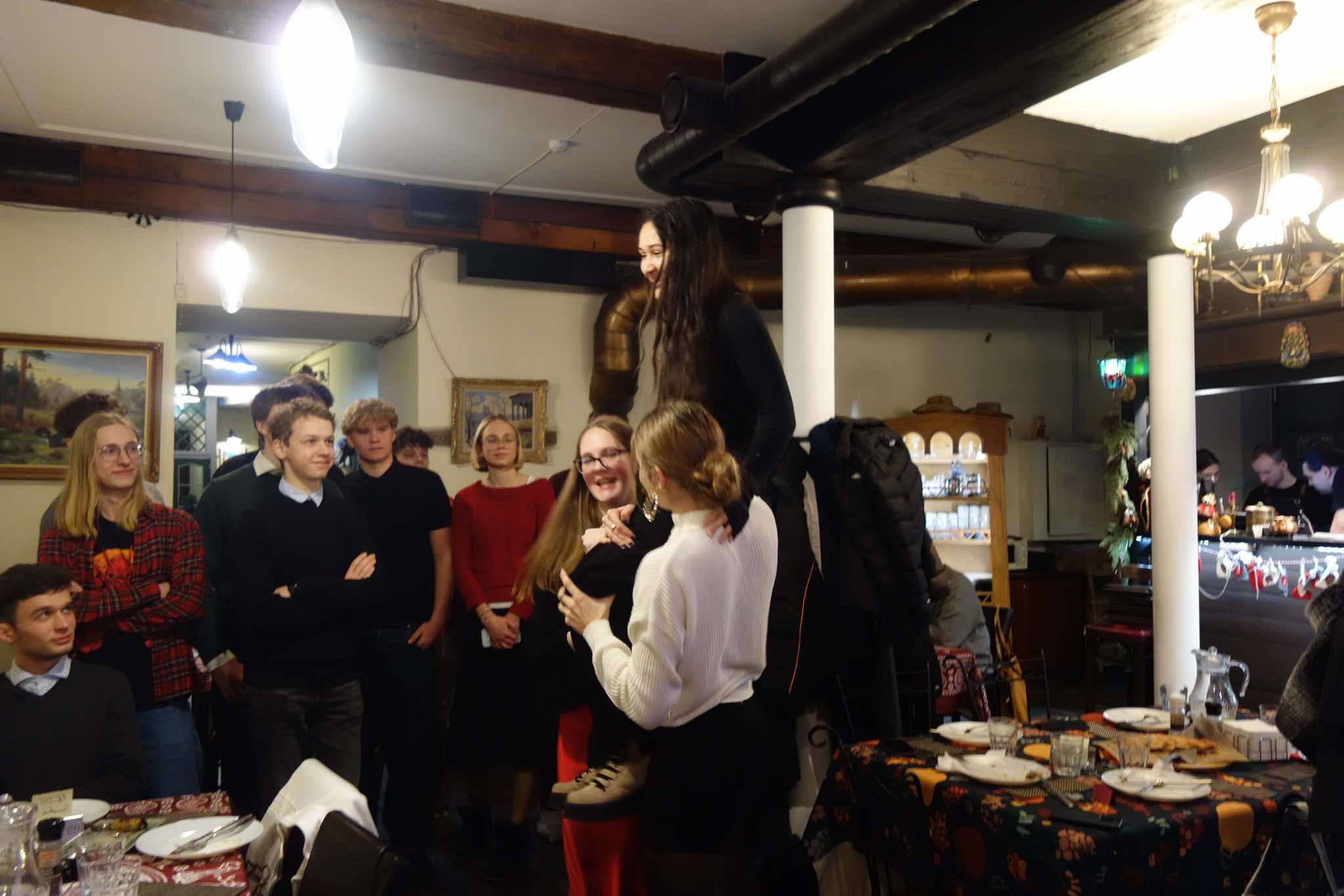 Viimane koolipäev enne jõuluvaheaega algas pidulikult – terve lend suundus Kirjanike Majja kultuuri ahmima. Seal kuulasime kolme loengut: Niguliste kirikust, Kirjanike Majast ja Nikolai Kannust. Kuulasid kõik peale Tõnissoni, kes magas, ja Eleeni, kes teda pastakaga torkides ärkvel üritas hoida. Saime teda millised olid kooliõpikud Reaali algusaegadel, kui aine oli veel ollus, molekul ollusekübe ning element algollus.