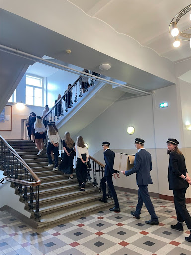 Kohtusime hommikul koduklassis 403 (loe: kõige paremas klassis), kus vaatasime korraks silma oma uutele ja enam juba mitte nii uutele klassikaaslastele, kelle seltsis siis Pudi reas juurde mütse lunastama sammusime. Poisi juures toimus armas tseremoonia, mille järel uhkelt oma klassi esimese “Pum-tšiga-pum!” hüüda saime. Uued mütsid kenasti jälle peas, liitusime ülejäänud koolikaaslastega aulas.