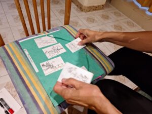 Eriti põnev oli keeleõpe lugude jutustamise kaudu. Jutustada saab lugusid nii suuliselt, kirjalikult, joonistades, aga ka teatrielemente kasutades. Sellised võtted ei arenda ainult sõnavara, vaid ka sotsiaalseid oskusi. Näiteks luuletuste lugemisel rühm ei otsi ainult tundmatutele sõnadele tähendusi ega vasta küsimustele, vaid esitavad luuletuse näidendina, kasutades luuletuse teksti ja püüdes seda peast esitada. Õppijat ja rühma motiveerib ka see, kui rühmliige või rühm saab ise ülesande valida.
